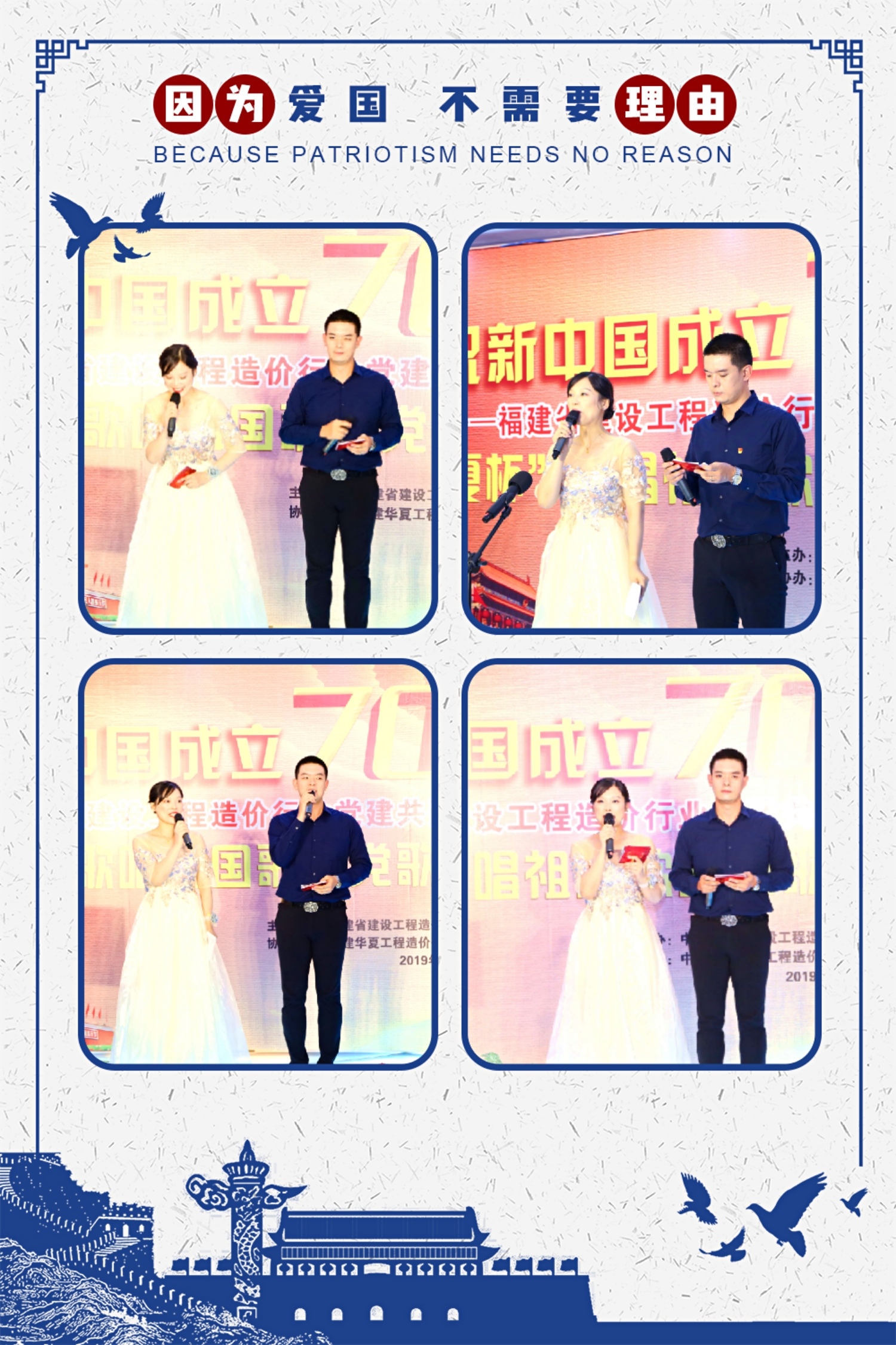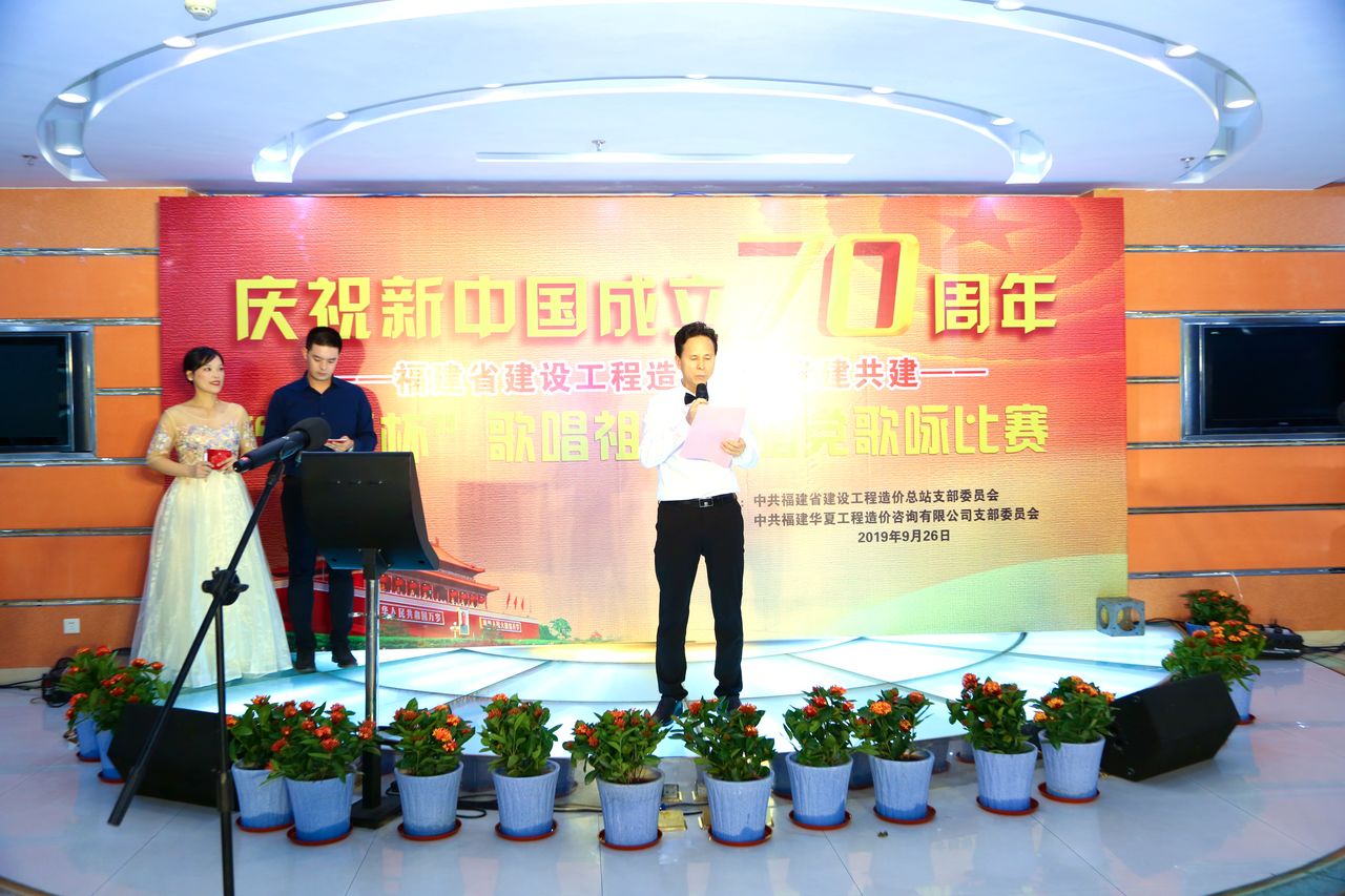 为庆祝中华人民共和国成立70周年,展现造价人不忘初心、奋勇拼搏的雄心壮志,福建省建设工程造价行业13家党建共建单位于9月26日下午,在省直机关工会活动大厅,隆重举行“‘华夏杯’歌唱祖国歌唱党”歌咏比赛。本次歌咏比赛由中共福建省建设工程造价总站支部委员会主办、九州官方网站平台(中国)官方网站党支部协办。省住建厅机关党委专职副书记卢文英等领导亲临现场指导。
